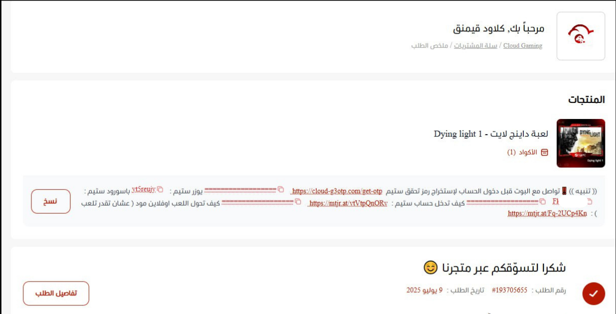 بعد ماتشتري حساب ستيم مشترك من متجر كلاود قيمنق ، بتفتح لك صفحة فيها معلومات الحساب وكيف تستخدمه وتلعب فيه يجيك .